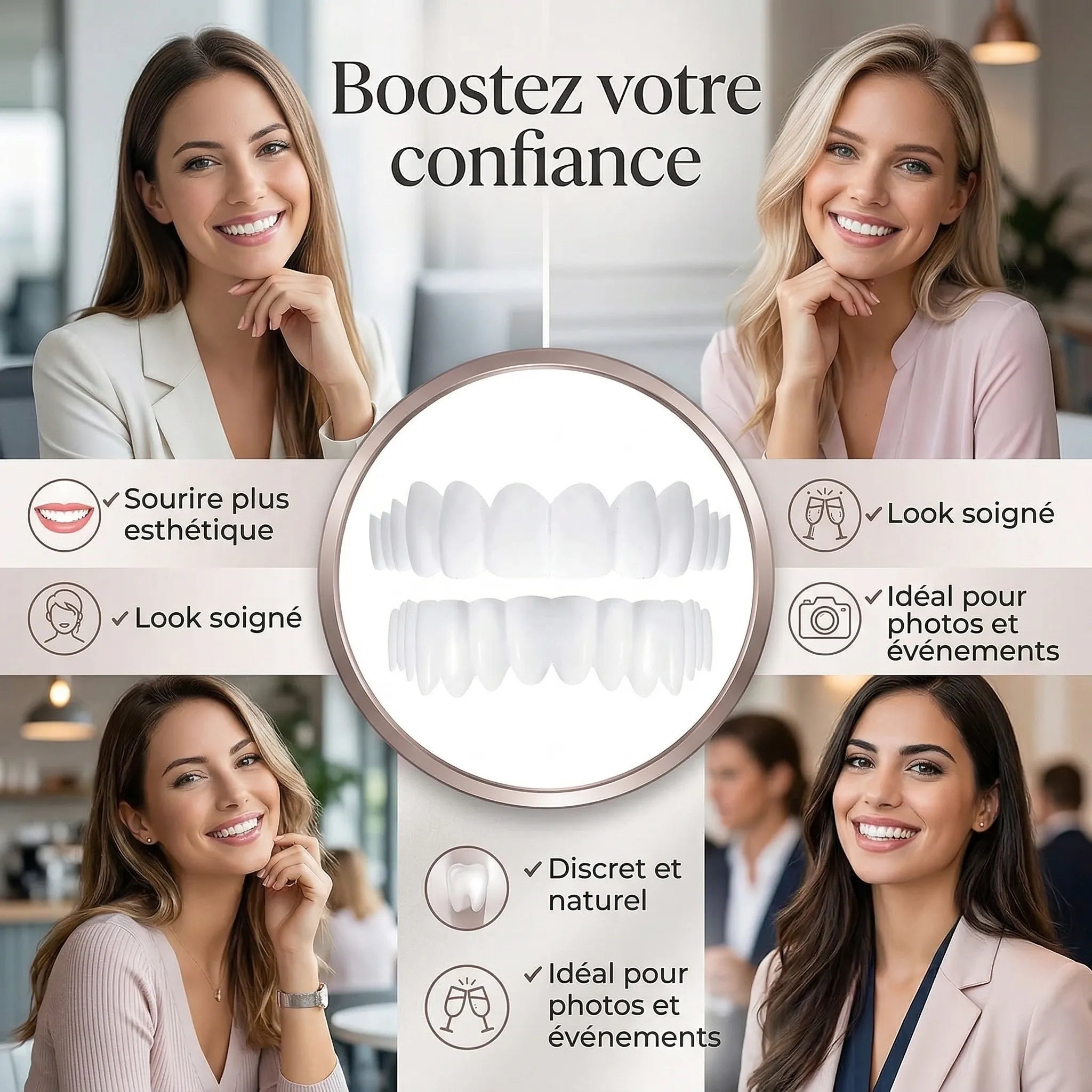 Elles offrent un sourire éclatant et uniforme, masquant les imperfections et les dents manquantes. Vous rayonnerez de confiance et d'élégance à chaque interaction sociale !